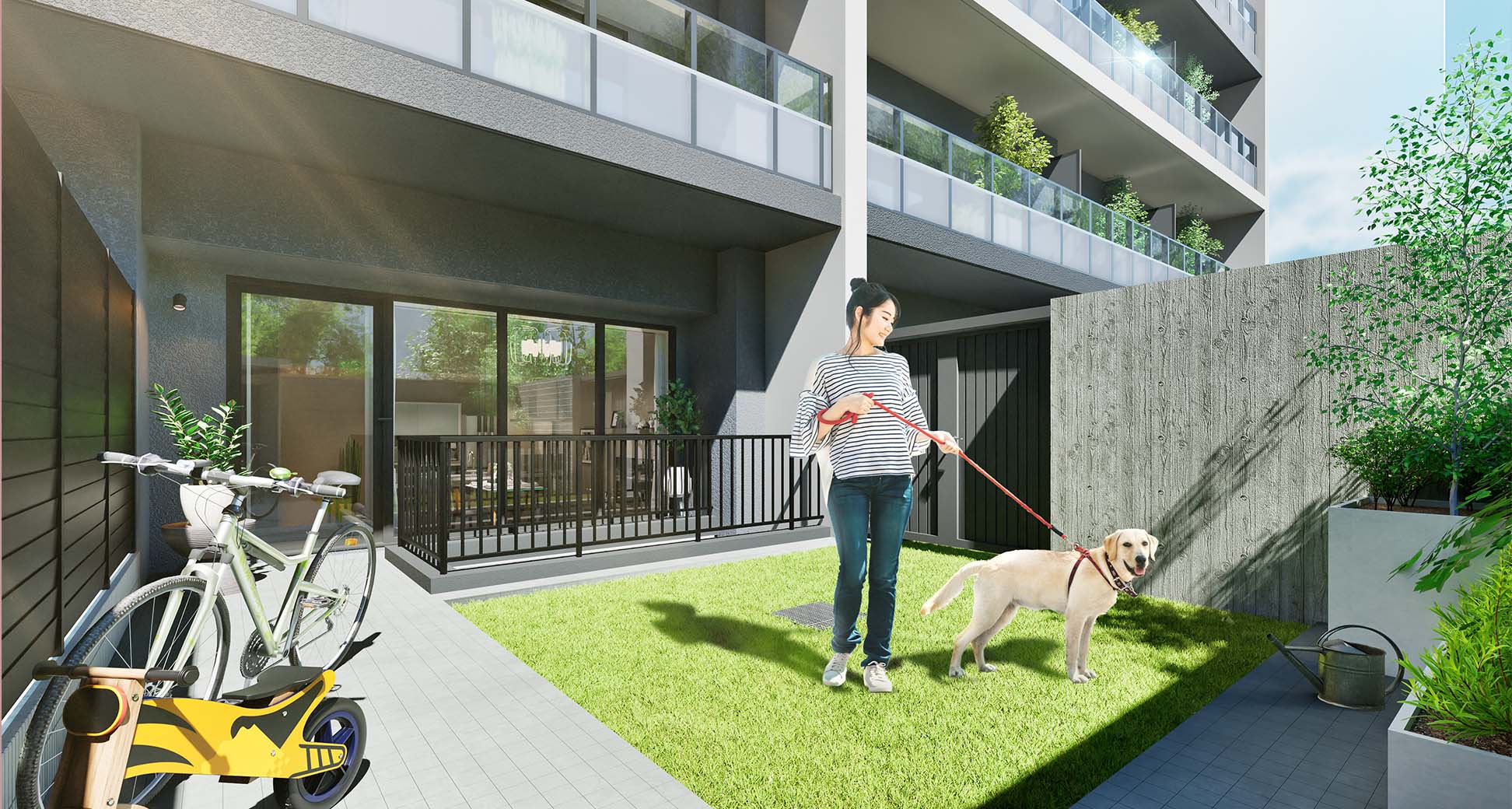 メゾネットの特徴を活かした上下に窓を設けることで、陽光あふれる開放的な空間に。 -